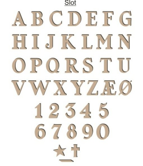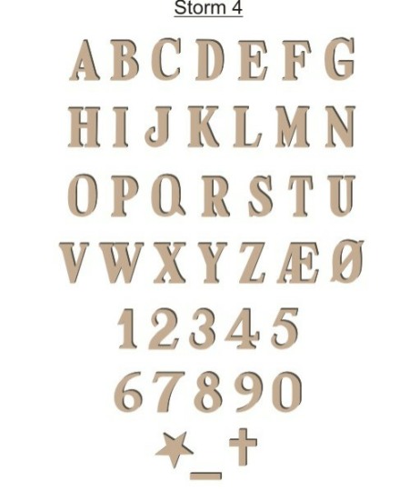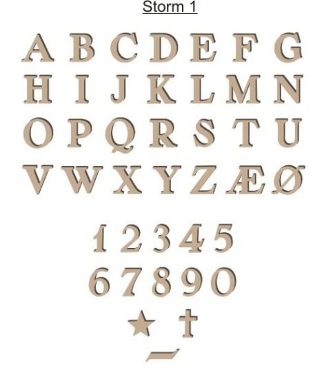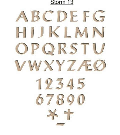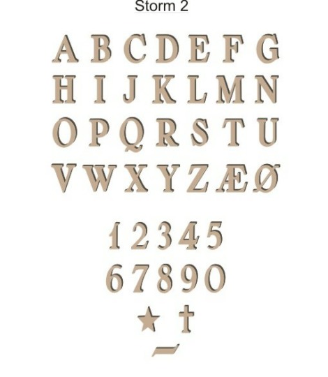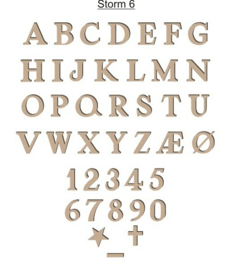 Vores bronzeskrift kan sættes på mange typer granit, dog er der visse krav til overfalden, den skal helst være så plan som muligt. Vores bronzeskrift kan leveres i farverene: Bronze ulakeret, – Lakeret eller sort. Pris afhænger af bogstavsvalg og størreæse. Fra 40,- til 110,- pr. stk.